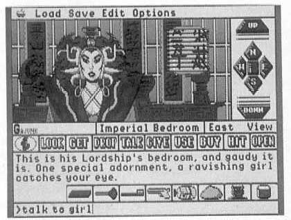 Instead of typing commands such as examine rock, you click on an object in the picture window, then on a command in the menu bar above. The Operate command offers additional freedom—with a few quick clicks you can use an object in one window to affect an item in another. Color distinguishes objects worth investigating from those that are purely ornamental.