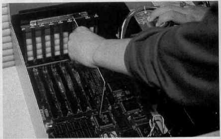 Your expansion cards come next. Before installing them, review the documentation on each card. You'll probably need to set each card's DIP switches and jumpers before you install it. With cards that have cables, such as the floppy and hard drive controller, you may find it easier to attach the cables before you install the card. Seat each card by firmly pressing it into its expansion slot; then fasten the card's back plate to the case.