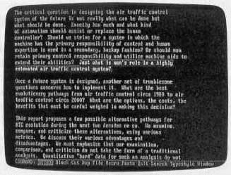 Rather than a plain, monochrome screen, Quite Write shows physical page breaks on the screen, and you can use the Setup feature to choose background and foreground screen colors, and colors to represent underlined, bold, and italic text.