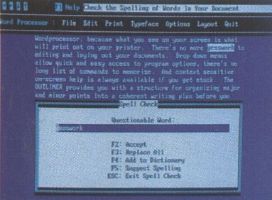Though you can get by with Works' word processor, I'd recommend you try Galaxy instead. It has multiple windows, mouse support, menus, and a gigantic thesaurus, but it's still easy to operate. Plus, it's distributed as shareware, so you can try it out before you buy it.