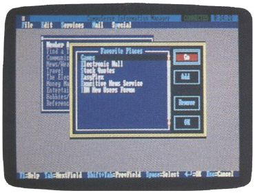 With both the original interface and CIM, you can type GO and a keyword to move directly to a specific location. CIM automates this process by letting you save these locations to a Favorite Places menu. You can also find areas of interest by selecting Find from the pull-down Service menu. Type in a keyword and you'll see a list of CompuServe services that are related to your chosen topic.