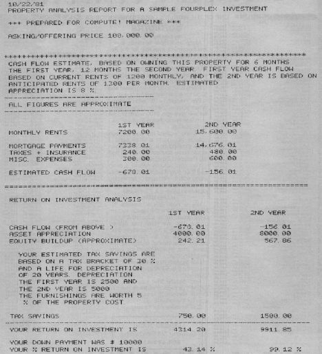 And this, your return on investment, is really the important figure for any investment program. All the various parts of any investment, such as the real estate we've been examining here, are combined in this figure.