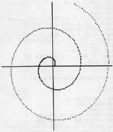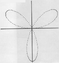 Some of our results are given in the figures that follow. In Figure 3 we show a graph of R = 80*SIN(3*THETA) a three-leaved rose. Figure 4 is a graph of a 13-leaved rose, R = 80*SIN(13* THETA). The cardioid R = 40*(1 + COS(THETA)) is illustrated in Figure 5. Figure 6 is the famous Spiral of Archimedes, R = 6*THETA. Figure 7 is similar, but not identical to the Limacon of Pascal. We chose R = 80*COS(THETA/3) for this figure. Figure 8 illustrates the Litus described by the equation R = 25*(2 + SIN(3*THETA)). Figure 9 has no name, but its equation is R = 25*(2 + SIN(3*THETA)).