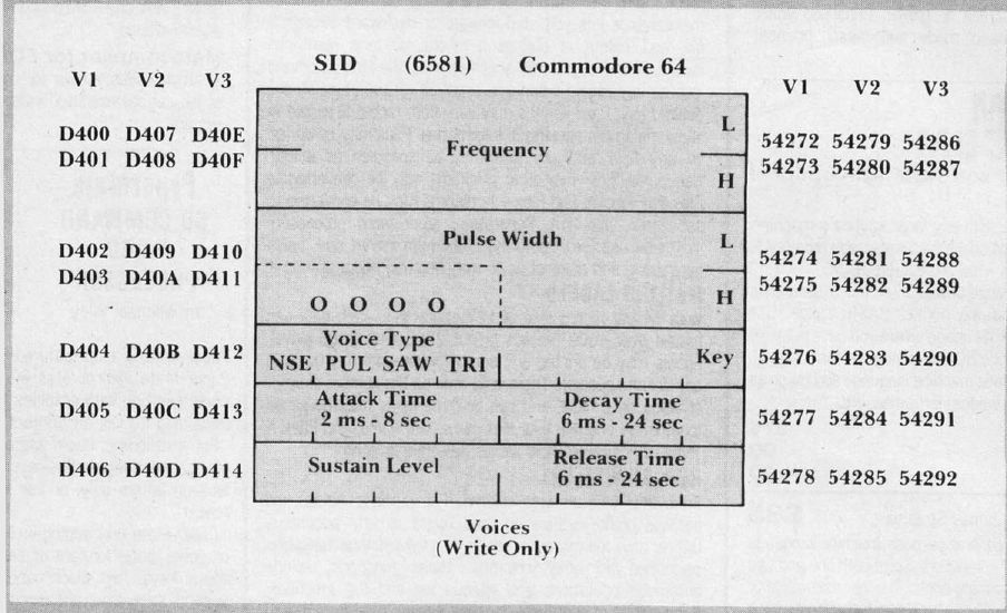 D400-D41C	54272-54300	Sound Chip (6581 SID)