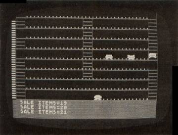 The crazed shoppers in Closeout must know how to home in on you. Their behavior must include the ability to get on and off the escalators. One thing you should watch out for when writing games like this is predictability. If your "intelligence" subroutine is too good, your creatures will accurately home in on the victim, but they will act in predictable ways. Sometimes it helps to stir a little randomness in with the RND function (we humans call such "careful" randomness creativity).