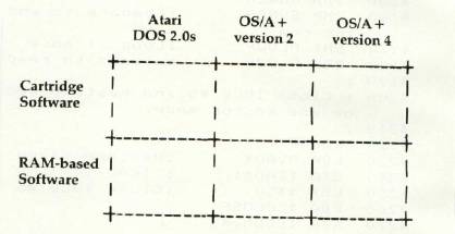 Some "features" of the machine are less obvious: none of the current Atari software will take advantage of the expanded RAM. When you bank select the RAM, all of the OS software, including the interrupt handlers, goes away, so you must provide at least a minimal OS substitute. Because the I/O space is from $D000 to $D800 (as on the 400/800), there is no way around having a "hole" in your otherwise contiguous RAM. There is no way to get at the RAM which is "under" the cartridge (this flaw is left over from the 400/800; it is a real deficiency). It uses the same old slow floating point routines.