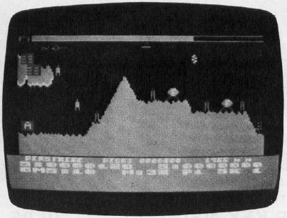 Mechanically, the game is quite strong. The scrolling and the graphics are very well done. The player's ship, missiles, bombs, and targets are clearly defined and, with the exception of the spaceship itself, all graphics are flicker-free. In addition, colors are vivid and the sound effects, though limited to explosions of one type or another, are more than adequate.