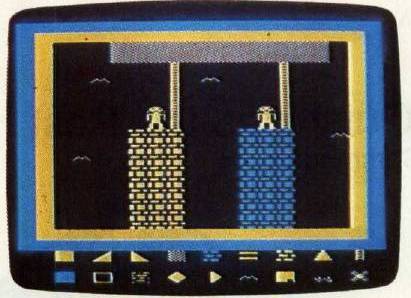 Construct screen art on the Atari with a joystick and basic shapes formed by redefining characters. You also can save a picture to disk or tape for later viewing. The Commodore 64 version, called "Hi-Res Graphics Editor," employs sprites to transport and transform even the most intricate designs.