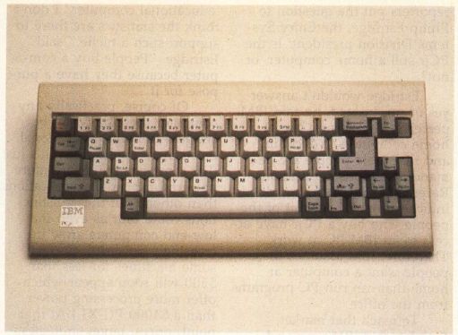 •PCjr typewriter-style keyboard. Available now, the new cordless keyboard is a significant improvement over the old chicletstyle "Freeboard." Except for the new keys and the lettering on the keycaps, it's virtually identical to the old model. In fact, it's made for IBM by the same outside company and built into the same case. IBM says the infrared link has been slightly improved. The F and J keycaps have raised ridges so your fingers can more easily find the home row without glancing away from the screen. Although the keyboard isn't quite as good as you might expect for a computer in the PCjr's price range—there's still no separate special function keys or numeric keypad—it should satisfy the vast majority of complaints about the old keyboard.