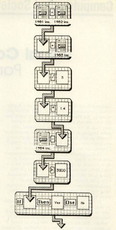 Last month we discussed the power of a highly visual computing environment, such as that provided by the Macintosh. I argued that many people who are not primarily analytical in nature may balk at the use of purely text-based computer languages, but that these same people may benefit greatly from highly visual programming environments such as those provided in Pinball Construction Set, Lode Runner, Multiplan, etc.