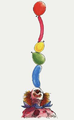 The main character in IBM PC/PCjr "Balloon Crazy" is a humorous clown.