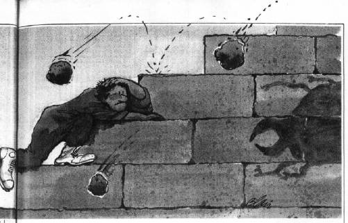 You can also lose the game by jumping in the wrong direction and falling off the edge of the pyramid. This happens frequently when you're fleeing in panic from the tumbling rock or nasty creature.