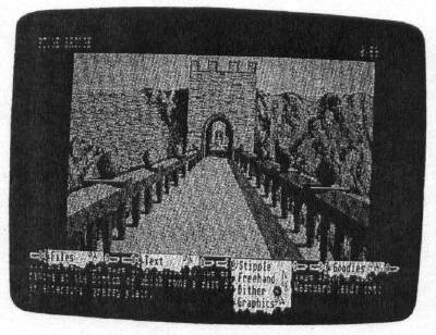 Furthermore, the game has graphics—pictures to accompany the text. Some of the pictures, especially those you see first, are stunning. In the ST version, at least, they blend colors and shading superbly. The title page, copying the game box, reflects the atmosphere of the latter part of the adventure. The pictures of the grassy plain and the wilderness, with their three-dimensional perspective and fine sense of pictorial composition, are worth staring at for several minutes before you move on. But my two favorites are the stone bridge and, especially, the palace gardens. The latter uses professional shading and texture to produce a truly excellent screen display. Few of the later pictures approach the quality of this one, but one great one is enough. I wish, though, that the pictures were integral to the play of the game; Firebird might consider making them so in future games. As they stand, they are nice to have, but you don't need them to solve the adventure.
