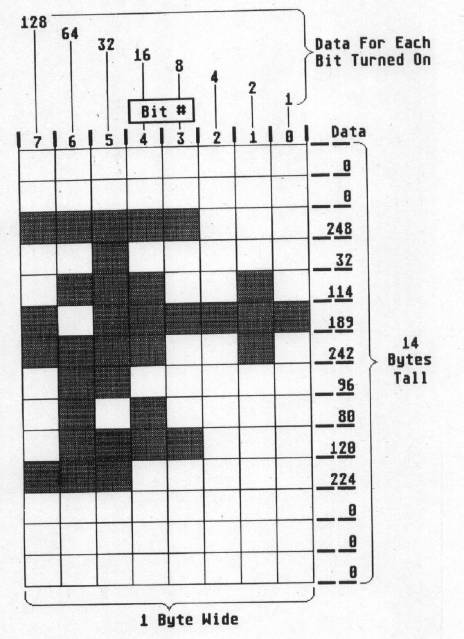 Line 80 calls the subroutine that POKEs the P/M data into the area defined in line 62. In this case, each DATA line containing the P/M data consists of 14 numbers, which contain pixel data for each of the 14 lines in the player shape (see Figure 2).