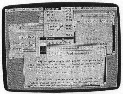 Since ProWrite is a WYSIWYG (What You See Is What You Get) word processor, there is never any doubt about how your document will look as hardcopy: It will look as it does on the screen display, down to and including the colors. The program supports a variety of color printers.