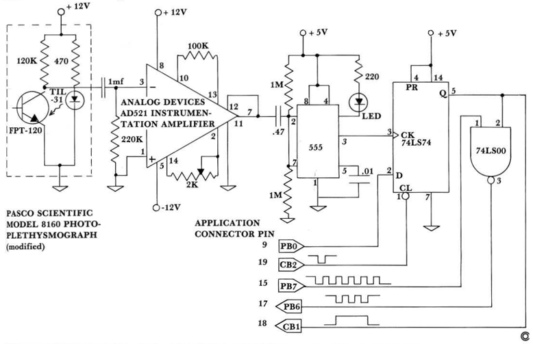 I would not recommend that a novice experimenter with very little test equipment attempt to build this circuit. A number of adjustments are necessary and things like fluorescent lights can cause problems with the plethysmograph, in particular they can produce a 120 cycle modulation that triggers the circuit. The circuit does make a nice electronics project, and I am sure that improvements are possible. Of course, the circuit and the program are meant to be used for instructional purposes rather than in actual medical applications.