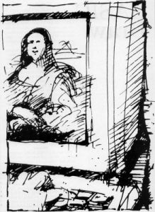 There are three different line thicknesses to select from. To select a line thickness move the mouse pointer to one of the three choices and press the LMB. Also select one of the two colors—black or white—in the same way. To draw with the mouse, move the mouse pointer onto the drawing screen, and when you want to draw, press the LMB. To stop drawing, release the button.