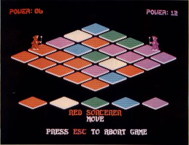 Now that you have an idea of what you are supposed to accomplish, you may be wondering how you go about it. Well, if you have ever played Archon or Archon II from Electronic Arts, you will recognize the overall approach I have taken. At the bottom of the screen, there is a four-line text window where you will see the title of the player who is currently moving, the action that is currently selectable and a few other messages and pieces of information. You might want to scroll through the text as you read the descriptions below. Also, remember that you can get online help as well.
