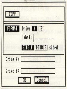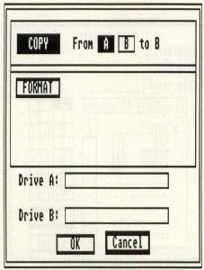 Furthermore, when disk copying you can use the A and B buttons to toggle the source and destination drives. Thus, if you decided you'd rather have the other drive as the source, switching is as simple as clicking the appropriate button (you can toggle the drive to format as well). The Cancel button is now the default, making it less likely you'll accidentally click on OK and format or copy a disk when you were trying to exit.