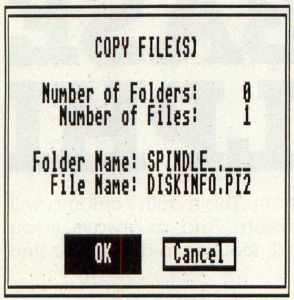 Highlighting a floppy-disk icon and clicking on Format under the file menu results in a totally new dialog box as you can see in Figure 6 than the one seen before. This is a copy/format box, which allows you to do either or both from the same place. If you drag one floppy-disk icon to another, the box in Figure 7 will appear. If you choose Format from the Desk drop-down, it will come up looking like Figure 6. To switch from Copy to Format, or vice versa, one merely has to click on the appropriate buttons. Thus, if you were going to copy a disk but forgot to format the destination disk first, you can do it from here, rather than having to Cancel the operation and select that option for the file menu. Handy.