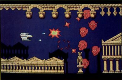 Menace uses ultra-smooth parallax scrolling to paint its intriguing screens. Parallax scrolling refers to the slight difference in scrolling speed between the foreground and background. Your eyes perceive this difference and translate it into greater depth, the impression of a third dimension. Disney Studios pioneered this technique, which then gave its flat cartoon animation some feeling of depth.