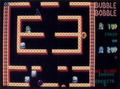 Every once in a while someone designs a program that takes an old standard and cleverly enhances it, creating something original and fresh. Bubble Bobble, although basically a shoot-'em-up, has transcended its genre and is unique and playable. Recommended.