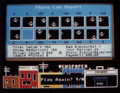 You should also keep conscious of your deadline. You have to finish the photo session by 4:00 a.m., or the newspaper won't even look at your photos until next time. And you know that there is no deader news than old news. So keep an eye on the clock in the upper right-hand portion of the screen. If it registers 4 a.m., forget it. The game will end.