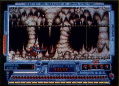 Several keyboard functions allow further configurations of the Time Warrior. After collecting ammunition packs, pressing the corresponding number key will activate an enhanced level of firepower. The blaster doesn't change; it just becomes more and more deadly. Other key codes allow the area coordinate display to be toggled on and off and to pause or restart the game.