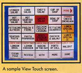 Computenzed cash registers have been used in high-volume restaurants and fast food chains for years but the View Touch is different because "We've eliminated the need for keys," says View Touch president Gene Mosher. It doesn't use Atari's GEM, either. View Touch created an entirely new user interface for the product. The menu can be changed frequently and, according to Mosher, the software can be customized without programming.