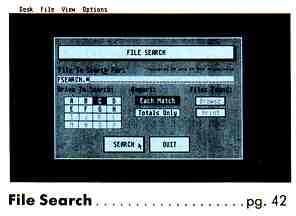 File Search is a new, indispensible utility from David Jarvis. This desk accessory will help you find any file on your hard disk (or stack of floppies). It accepts wildcards and lets you browse, copy, delete, rename or print the file it finds. File FSEARCH.ARC; runs in any resolution.
