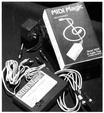MIDI Magic lets you hook up any tape recorder (cassette, reel-to-reel or micro) and any MIDI device, (keyboard, drum machine, tone generator, computer, etc.) and store your MIDI data on tape. it works with both expensive and inexpensive tape decks and recorders. In fact, I tested it with an old Sanyo tape deck, my Sons' portable recorder and a Walkman that I used to play back the MIDI recordings. it really works.