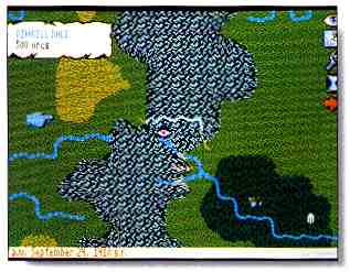 of cityscape viewed from eye-level. To move a man, you use the joystick