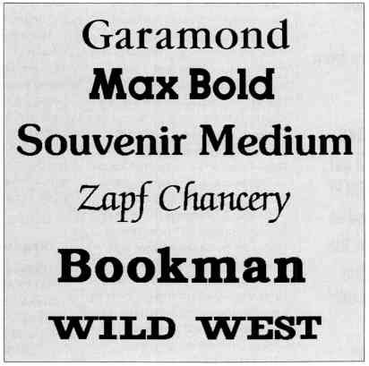 I recommend! ITC Souvenir as an easy-to-read, body-text font and Futura II as a bold choice for captions and headings. Examples of ISD fonts are in the file SOUVMEDE.CFN.