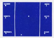 You have to be quick to shoot these invaders as they zig and zag down from the top of the screen. You can move your gun laterally with the joystick and fire with the button from your supply of 75 rounds. You score points for each attacker you hit, and lose a player if the attacker hits you. At the end of each wave your score is enhanced by the number of players you have left. Each game supplies four players, and an additional player is awarded after each wave is completed.