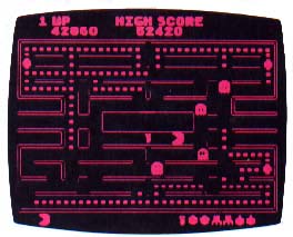 I'm convinced Pac-Man was the beginning of the so called "cute games" so popular in arcades today. In fact, it started more than one trend. For some reason, (certainly with Freudian overtones), women started filling the arcades to play Pac-Man. It's the only home game my wife plays frequently. Some of the best players I've seen are women. Perhaps it's the passive-aggressive nature of Pac-Man, where there is no shooting, but after eating a power pill, one can chase and eat the previously antagonistic ghosts, for bonus points of course.