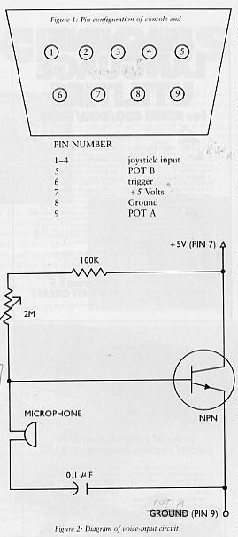 A simple circuit converts the voltage produced by a microphone into a variable resistance which is read by the computer. This number is then saved and sent to the TV speaker to produce a voltage which is in direct proportion to the paddle resistance. The result is recognizable reproduction of whatever sounds are uttered through the microphone.