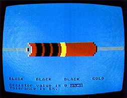 The most commonly seen resistor is a small tubular device containing carbon or other resistive material with wires protruding from each end. Color coding for the values is painted in sequential bands on the tube. The program presented here provides a graphic color display of the standard resistor codes and automatically computes the value in ohms. The program can be used as both a real-time tool to identify resistor values and as a learning aid.