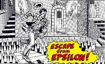 Escape from Epsilon is a challenging arcade game for one player. The program requires a joystick, BASIC, and at least 16K RAM (24K) for disk systems), and runs on all Atari computers.