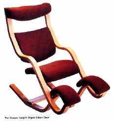 The Tripos Balans is a chair with three different personalities. In its upright position, it helps to prevent the fatigue and back strain that often accompany long hours at the computer. And after you're done programming, switch into intermediate mode. Your chair will follow, turning into an easy chair that also rocks. Finally, its full-lounge position allows you to put your feet up and luxuriate in its lush, woven-wool upholstery. Its forty pound, Norwegian beechwood frame provides plenty of support, and assembly is easily performed with the Allen wrench included in the purchase price.