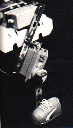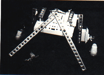 Figure 1 is a closeup of a leg that is made out of two servos and a few pieces from the Erector construction set, but you also can use a different constructior kit, or wire- hangers and a lot of patience.