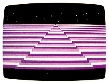 This month's listing uses all our new commands to draw a striped interstellar landing strip which appears to move. You can control the "speed" of the landing strip with a joystick plugged into port one. Push the stick forward to speed up, pull it back to slow down.