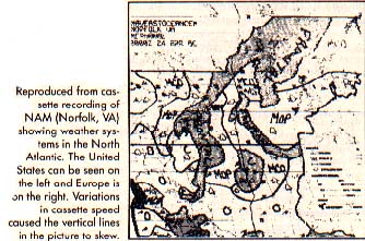 With a little practice, you'll quickly learn to synchronize the computer to the incoming signal and produce impressive satellite maps and photos. There is enough time at the beginning of each transmission to make the adjustments needed during the phasing period, and weather transmissions occur regularly. Some WEFAX stations broadcast 24 hours a day. Once you have determined a reliable frequency in your area, it's just a matter of being there at the right time.