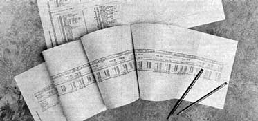 3. If the form is taller than 80 rows, you will need to print your form to disk in horizontal sections (80 rows high times the width of your form). Those with wide carriage printers can change the 80 in lines 90, 220, and 520 of TAPELESS.BAS to allow for the number of columns your printer can accommodate at 10 characters per inch).