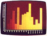 Our first listing, GRAPHDEM.BAS, proves that you can mix Graphics 8 and 9 vertically and there's no reason you can't change the program to include Graphics 10 or 11. So type in Listing 1, GRAPHDEM.BAS, check it with TYPO II and SAVE a copy before you RUN it.This program generates a screen consisting of a Graphics 8 vertical margin down the left side, with the rest in Graphics 9. The normal four-line horizontal Graphics 0 text window is also retained. With this arrangement you can draw graphs in 16 intensities, neatly labeled with 40-Scolumn text.