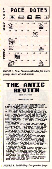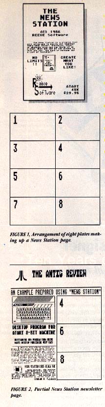 News Station was given a short write-up in the July, 1987 Antic feature review of printer software (page 17). I felt that the reviewer missed much of the versatility of this program, even though he called News Station "an ideal tool for putting text into a picture" and admitted that the program "works fine for two-column printouts."
