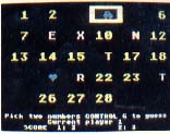 Pit your memory against a human or computer opponent with Recall, a colorful new 8-bit BASIC adaptation of TV's classic Concentration game. The Recall game board consists of 30 numbered positions with an object hidden behind each one. A player chooses two numbers, exposing both object icons. If there is a matching pair, two characters of a hidden message replace the objects. You have earned a point and can take another turn. If you fail to make a match, it's your opponent's turn.