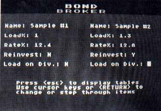 Let's run through an example. Recently, one high-yield bond fund was giving a 12.62% yield. This fund, which we'll call ABC, is a no-load fund--no sales commission is charged. Another fund, XYZ, yielded 13.12%. This fund, however, charged a 5% load except on reinvested dividends. Which fund is the better investment? We'll use Bond Broker to find out.