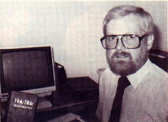 Rev. Earl Smith gets ready to word-process a sermon with his 800XL.