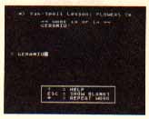 At the top ofthe display is the program title, followed by the name of the lesson now under way. Below this is a line indicating the number of the word to be spelled and the total words in the quiz. At the bottom of the display is a box with information about special keys that Yak-Spell understands.