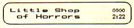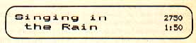 The program then asks for the first title. For each title, there is room for 16 characters on each of 2 lines. The program will display two lines with a space between them. Type your title on the lines, but don't type a letter over the space. Simply space over it and begin the second Line. Use the cursor keys to edit your line, then, when everything looks correct, press [RETURN]. The program will split the text into two lines and ignore the space between them.